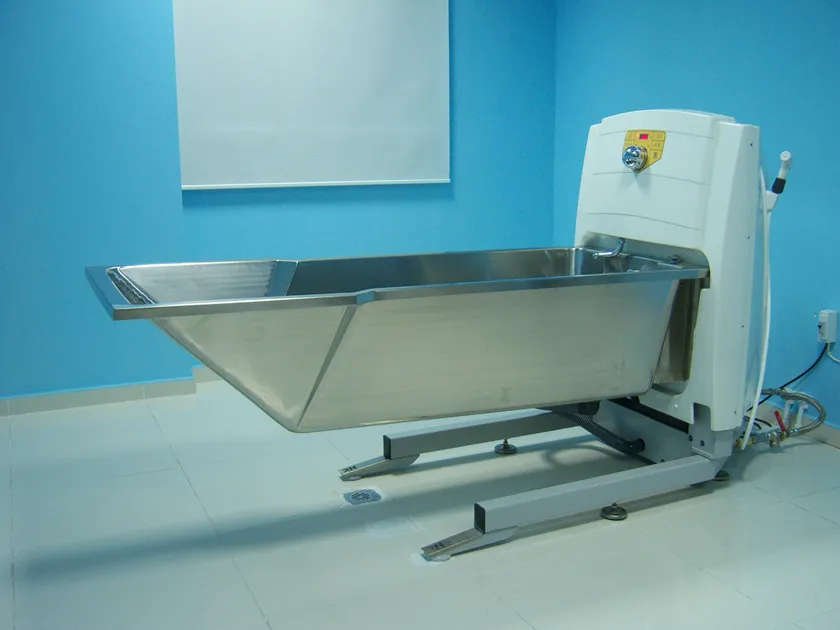 Height-adjustable stainless steel bathtub designed to meet hygiene and safety requirements during bathing, specially developed for use in demanding environments and by burn units. The stainless steel tub can be supplied with all TR 900 fiberglass panels as well as with the Autofill function. Its ergonomic design and clean lines also make bathing a relaxing and enjoyable experience.