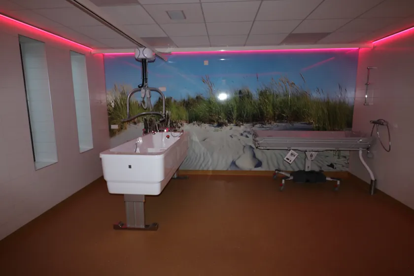 A bath is not only relaxing for the body but also for the mind. It improves patient well-being, promotes skin health, and provides a calming effect.