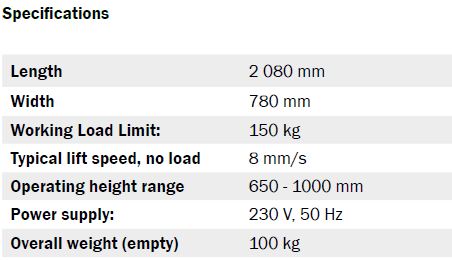 • Maximum patient weight: 150 kg / 330 lbs